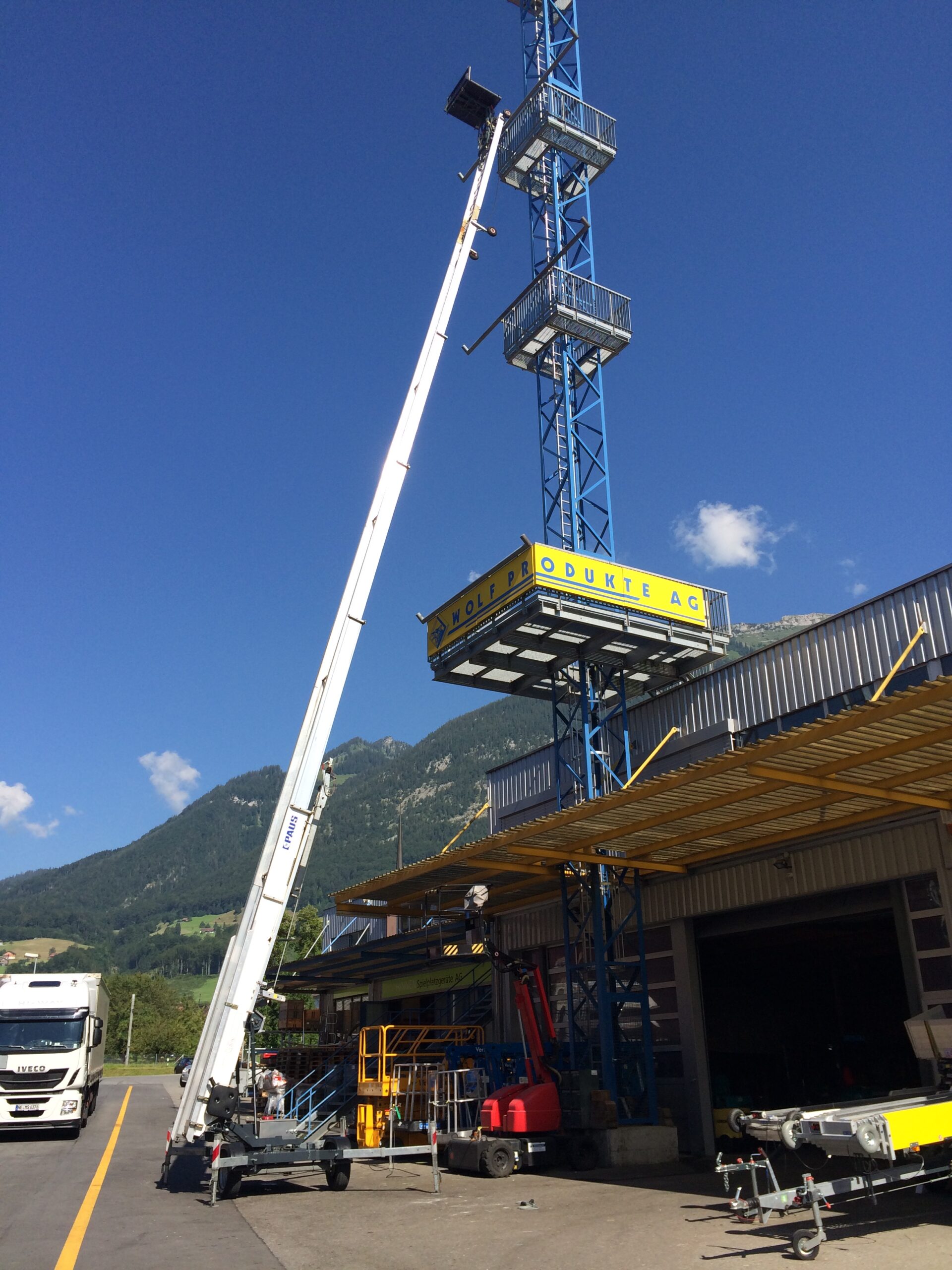 Die zuverlässige und robuste Konstruktion der Paus Bauaufzüge ermöglicht einen täglichen, weltweiten, problemlosen Einsatz. Kurzfristige Rüstzeiten sind für uns -auch für ungeübtes Personal – selbstverständlich. Die komplette Bedienung der Paus Bauaufzüge -auch des hydraulischen Knickstückes – erfolgt vom übersichtlichen Steuerstand aus. Mit Transporthöhen von bis zu 42 m und einer Nutzlast von max. 250 kg meistern die Paus Bauaufzüge vielfältige Aufgabenstellungen.